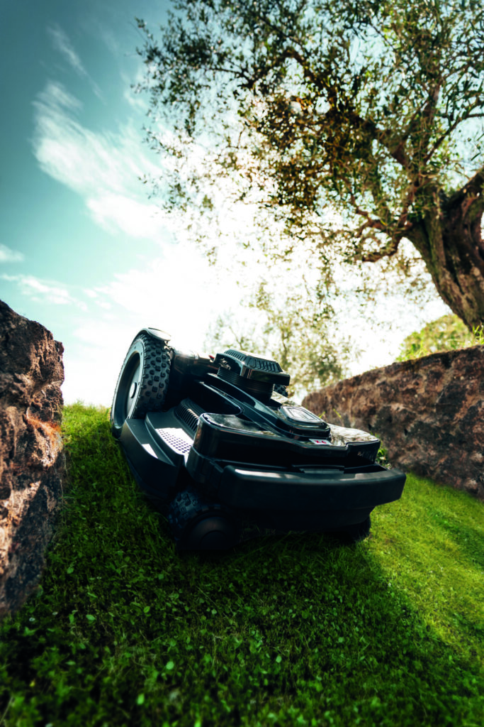 Roboty Ambrogio zostały stworzone z myślą o wymagających ogrodach. Bez problemu radzą sobie na nierównych terenach czy skarpach, a także w przypadku wąskich przyjazdów i przeszkód takich jak drzewa czy rabaty. Dzięki napędowi na cztery koła i czujnikom przechylenia, roboty Ambrogio utrzymują stabilność i precyzję pracy.